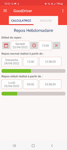 – Temps de conduite (continu, journalier hebdomadaire, bi-hebdomadaire)