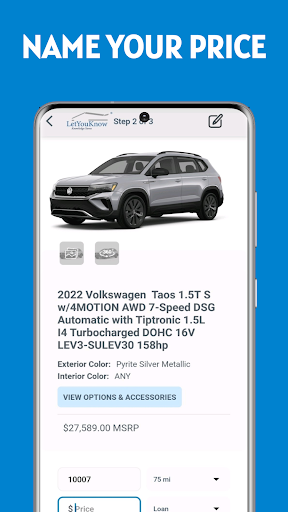 We recommend researching your desired car online, finding the lowest price you can and then submitting an even lower price with Submit Your Price (aka LetYouKnow®). Build your car, name your own price and submit! No waiting, you will get an instant result. Don’t worry, if your price bid is not accepted, there’s no charge and you can try again! If you don’t change any of your search criteria, there will be a short wait time. If you don’t want to wait to resubmit your new car criteria, there is no wait time if you modify the search radius, and/or zip code, and/or the car type, with the same or different price bid.