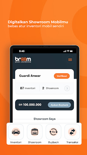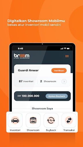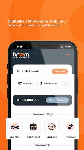 Broom teman bisnis showroom, siap menemani dealer showroom mobil bekas kembangkan bisnis. Akses seluruh ekosistem broom yang solutif memudahkan kamu menjalankan bisnis mulai dari pengaturan stok mobil, opsi jual-beli kembali untuk modal tambahan, hingga penjualan ke sesama showroom melalui satu aplikasi.
