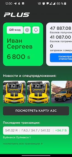 Тут вы можете видеть баланс своей бонусной карты и все операции.