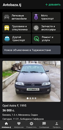 Установите Avtobaza.tj чтобы купить и продать новые, б/у авто в Таджикистане: легковые и грузовые автомобили, новые и с пробегом, мотоциклы и спецтехника. А также: запчасти, тюнинг, ремонт, автомойки и прочие услуги — все собрано в одном приложении. Автобаза тч