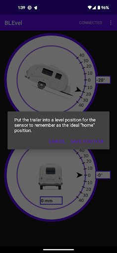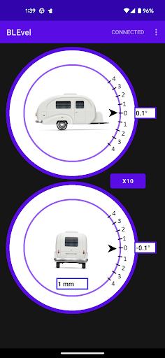 This app facilitates communication to a Bluetooth sensor providing pitch and roll sensor values. It can be used to check the level of a vehicle remotely.
