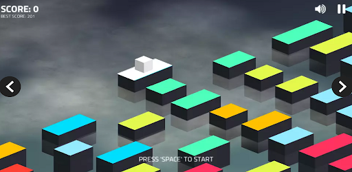 キューブをタイミングよくジャンプさせて台を乗り継いでいくシンプルなアクションゲームです。パーティの余興ゲームなどにどうぞ。