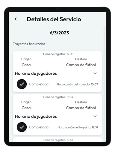 De una forma sencilla, ágil y eficaz, la aplicación registra todos los servicios diarios, controlando las fechas y horarios de todos los trayectos de sus ocupantes.