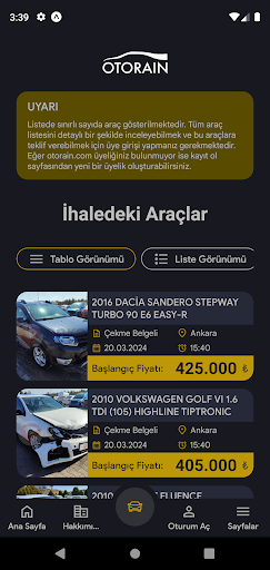 Otorain ayrıca “Gelişmiş Filtreleme” seçenekleri ve hızlı “Araç Arama” özelliği ile istediğiniz aracı kolayca bulmanızı sağlıyor. “Hesabım” bölümünde bulunan “İstatistiklerim” ve “Satın Aldıklarım” sayfaları, alım-satım süreçlerinizin izini sürmenizi sağlarken, üye olmadan bazı araçları görüntüleme imkanı da sunuyor. Ayrıca, platformu denemek isteyenler için “Demo Üyelik” seçeneği de bulunuyor. Daha kapsamlı avantajlar ve daha fazla erişim için “Normal Üyelik” seçeneği de sunuluyor.