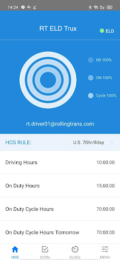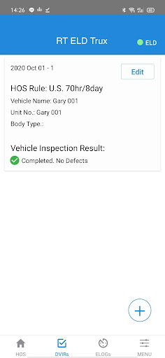Base on the HOS rule driver select, RT ELD Trux APP automatically help driver calculate remaining Driving time, ON Duty time, and Cycle times. Hours of service time calculation include different rules for Track and Bus.