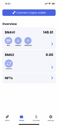 – Claiming an offer means you exchange NAVI tokens for a discount voucher.