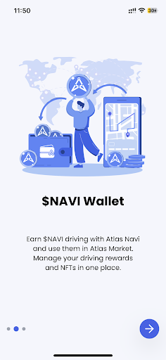 Atlas Market is a partner of Atlas Navi – a drive and earn – navigation app rewarding you with NAVI tokens whenever you drive in exchange for the traffic data you provide. The Wallet section helps you manage these rewards, exchanging them for real life services and products.