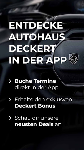 Informieren Sie sich über die neusten Angebote, erhalten Sie exklusive Informationen und Servicehinweise in Ihrem persönlichen Bereich. Daneben können Sie in der App Servicetermine buchen, den aktuellen Servicestatus einsehen, spielerisch „Deckert Punkte“ generieren und vieles mehr.