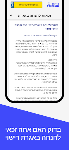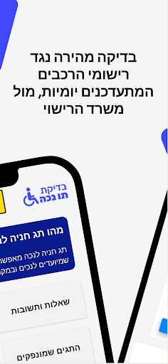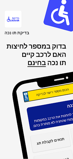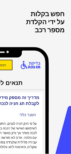 האפליקציה “בדיקת תו חניה לרכב” מאפשר לך לבדוק מיד אם רכב החונה בחניית הנכים קיים תו נכה תקף, על ידי הזנת מספר רכב ישראלי.