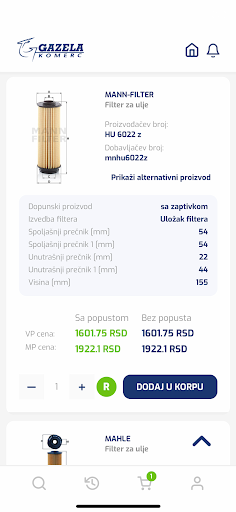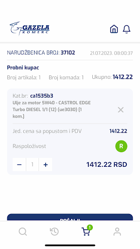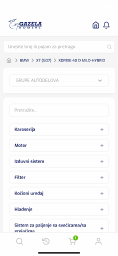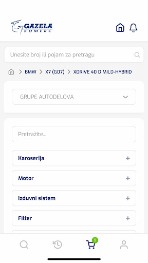 B2B application for ordering car parts developed for Gazelakomerc clients.