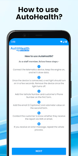3. The device will send this data to the user’s phone in the form of a link through an SMS or email containing another link to download the AutoHealth Helping Hand app.