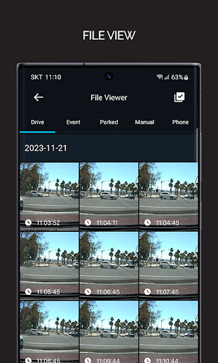 Connect your device via WiFi for smartphone connectivity and video recording. Easily view captured videos and images in real-time on your phone, manage files on your device and change device settings.