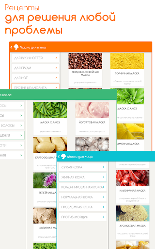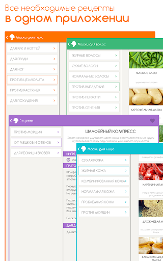 Все ингредиенты, элементы приготовления и нанесения в наших рецептах подобраны исключительно с точки зрения максимальной пользы для определенных типов кожи, волос, а также для самых распространенных проблем современной девушки. Состав каждой маски содержит только натуральные ингредиенты, достать которые вы сможете прямо у себя из холодильника или в овощном магазине.