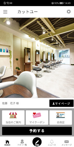 来店履歴やポイントの確認が可能です。またお店からのイベント情報、