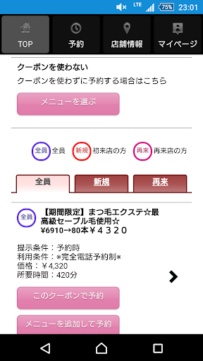 お得なクーポンが配信されます。ネット予約時にクーポン利用での予約も可能なので来店時もスムーズに施術頂けます。