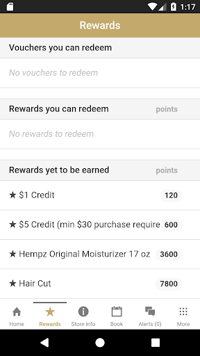 * Check available rewards across all participating stores you have registered with