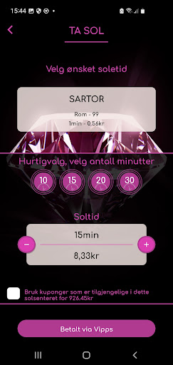 Brun og blid Vipps solpass is a new solution application allowing to pay for sun time using Vipps payment. New and improved age verification with Vipps will allow easier and more efficient work and faster response. You will get 20% more sunbathing time when using this app.