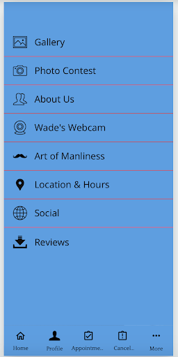 Wade’s is a full-service barbershop. We do basic, trendy, and urban men’s and boys cuts. Women’s haircuts, too! Get a straight-razor shave, steam towel facial treatment, hair color and visit with Cadbury the dog, too! You can schedule an appointment through the app, but we also take walk-ins.