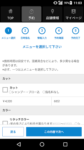 予約状況の確認やキャンセルがマイページ上から行えます。スタッフの登録が出来るので前もって担当者を登録しておけばマイページからスムーズな指名予約が可能です。