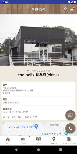 店舗のマップが表示され、地図アプリとも連携しているので、初めてのご来店の時も簡単に見つけることができます。