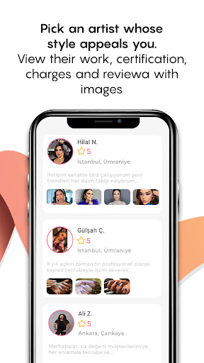 After visiting the profiles of our artists, you can view their certification, customer ratings, reviews with images, preferred brands, years of experience and much more. Furthermore, you can contact the artists you want to send a request to via the chat tool, and schedule your wonderful appointment together.