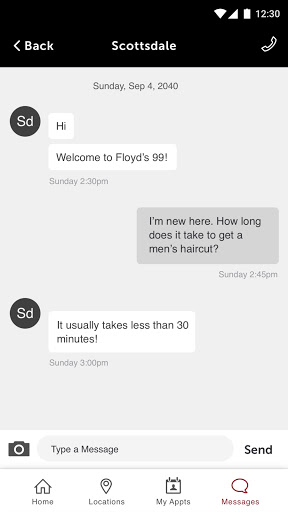 Two-Way Shop Communication (use the app to send your shop a text message about your reservation, or directly give them a call)