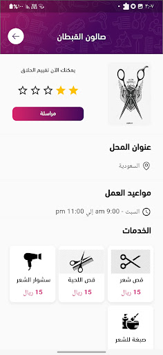 من قص شعر وقص لحية ويخدم الفئتين حريمي ورجالي ويمكنك حجز من خلال الفرع أو طلب زيارة منزلية ماذا تنتظر قم بالتحميل الان واستمتع بالخدمات التي يقدمها التطبيق
