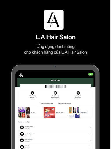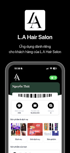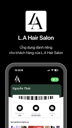 L.A HAIR SALON là Ứng dụng dành cho khách hàng của L.A Hair Salon. Ứng dụng giúp khách hàng thuận tiện đặt lịch làm dịch vụ và theo dõi lịch hẹn, theo dõi các thông tin liên quan đến thẻ tiền mặt, điểm tích luỹ, lịch sử hoá đơn, gói dịch vụ đã mua