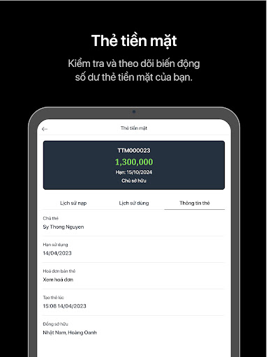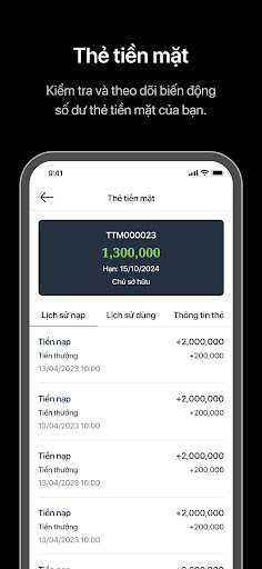 Kiểm tra theo dõi ngày hết hạn và biến động số dư thẻ tiền mặt của bạn.