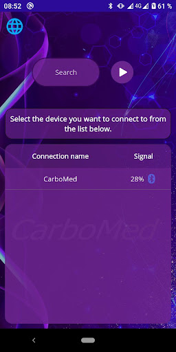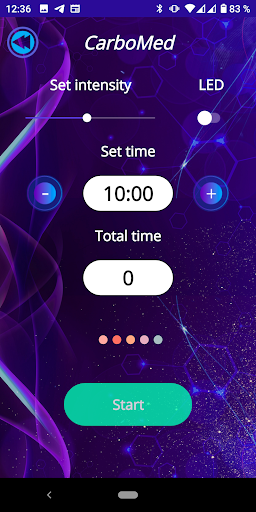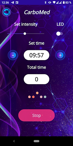 The program allows you to find all available CarboMed devices with further connection to them, also convenient control allows you to smoothly and accurately adjust the intensity of the device, indicate the time of the procedures and the ability to turn on the backlight if necessary.