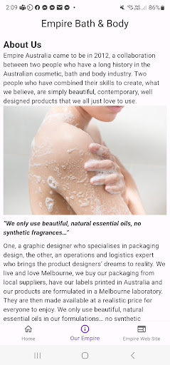 Empire Australia came to be in 2012, a collaboration between two people with a long history in the Australian cosmetic, bath, and body industry. Two people who have combined their skills to create what we believe are simply beautiful, contemporary, well-designed products that we all love to use.