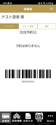 バーコードをかざすだけで受付出来るチェックイン機能、次回ご予約日時表示など、カードレスな診察券としてご活用頂けます。