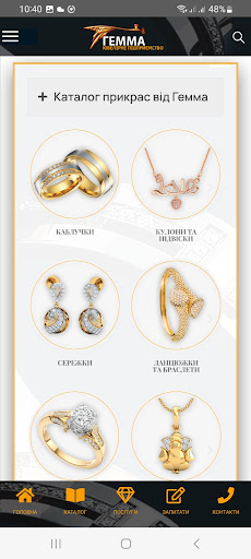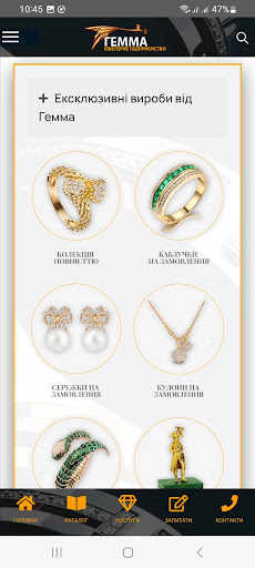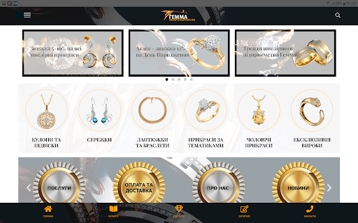 Ювелірний інтернет магазин «Гемма» – це сучасний дизайн та висока якість обслуговування. Наші ювелірні прикраси додадуть Вам вишуканості, а Вашому стилю – індивідуальності та завершеності, вони доповнять Ваші сімейні коштовності та стануть втіленням Ваших вишуканих мрій.