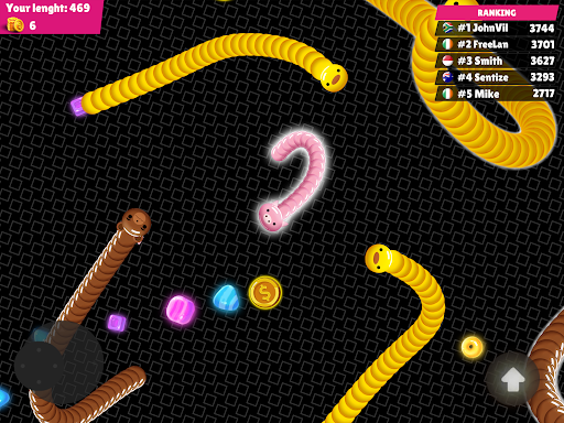 Play online and be the longest player. The gameplay is very simple, where players control a snake-like creature and must grow by eating food while avoiding other snakes. Players must use their sneaking abilities to outsmart and outplay their opponents in order to become the biggest and baddest snake games arena. So sneak your snake and defeat the opponents in order to become the biggest king of the snakes.