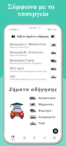 Μια από τις πιο ανανεωμένες και ολοκληρωμένες εφαρμογές για σήματα οδήγησης αυτοκινήτου, μοτοσυκλέτας, Β και Γ κατηγορίας φορτηγού – λεωφορείου καθώς και ταξί.