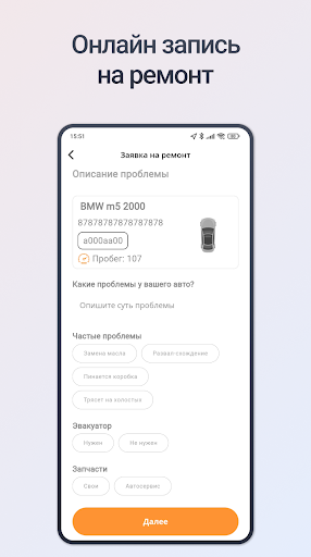 * Запись на сервис. Оперативно записывайтесь на сервис из приложения.