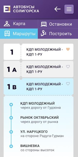 – просмотр информации о всех маршрутах городских автобусов Солигорска;