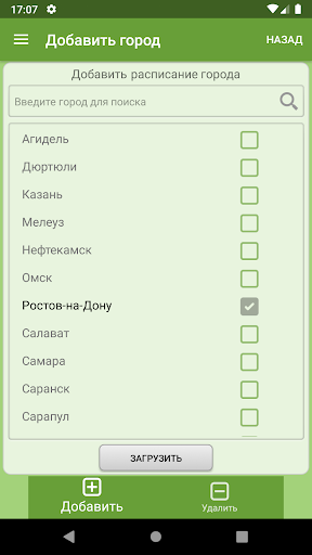 Есть возможность добавить расписания других городов.