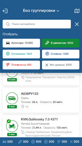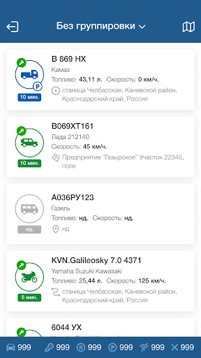 Работа с объектами: Отслеживайте параметры движения, зажигания и местонахождения объектов, а также актуальность полученных данных;