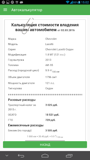Калькулятор производит суммарный годовой расчет затрат с учетом транспортного налога, ОСАГО, КАСКО(расчет КАСКО в текущей версии приблизительный), затрат на бензин резину, стоянку. Расход бензина автомобиля берется из базы авто, на основании выбранной вами модели для расчета. Налоги и ОСАГО рассчитываются с высокой точностью, учитываются все необходимые для расчета параметры – регион водителя, коэффициенты, скидки.