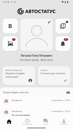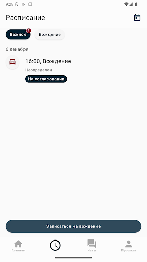 Расписание. Будьте в курсе своих предстоящих вождений и экзаменов.