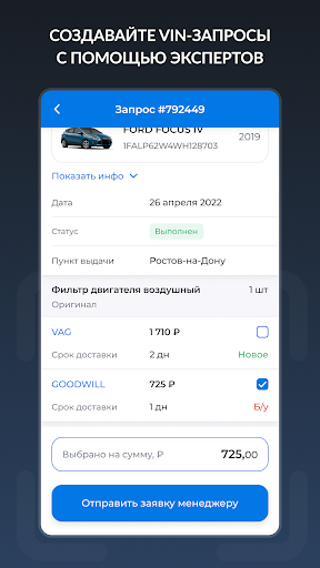 – Продвинутый поиск: Используйте VIN-код для точного подбора запчастей, или просто выберите нужную категорию – от расходников до кузовных деталей.