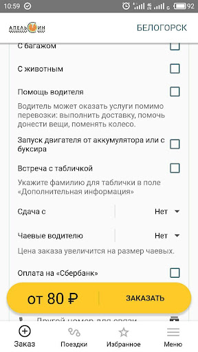 Делая заказа через приложение “Апельсин:заказ такси”, Вы соглашаетесь с условиями публичной оферты, которые Вы можете прочитать на сайте www.taxibelogorsk.ru