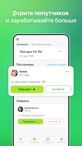 Для водителей, желающих поделиться своей поездкой и оптимизировать затраты на транспорт.