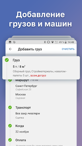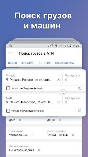 ● Добавляйте свой транспорт и получайте грузы от грузовладельцев.