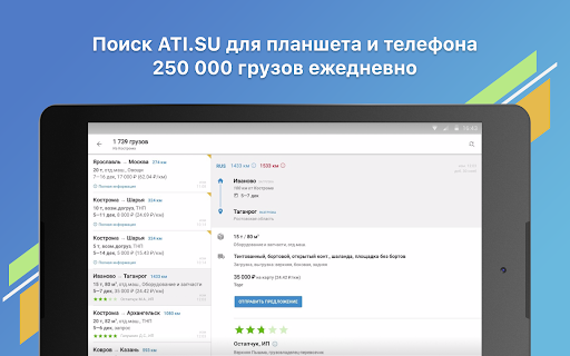 More than 350,000 cargoes and 100,000 trucks in the ATI.SU Freight Exchange app. Here freight owners can quickly find reliable carriers, and carriers can pick up the suitable cargo.
