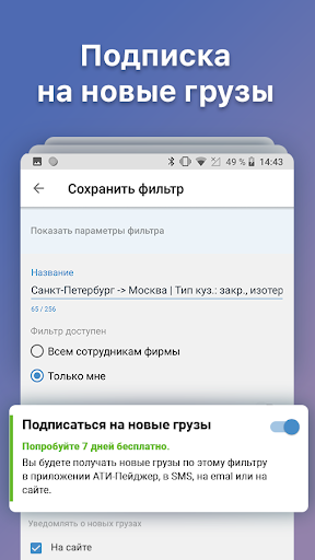 Получайте уведомления о подходящих грузах, как только они появятся на ATI.SU.