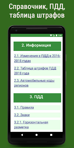 В разделе “Справочник” содержится полезная информация, необходимая водителям каждый день: