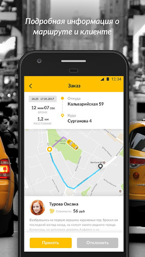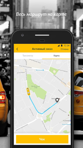 • маршрут движения такси отображается на карте;